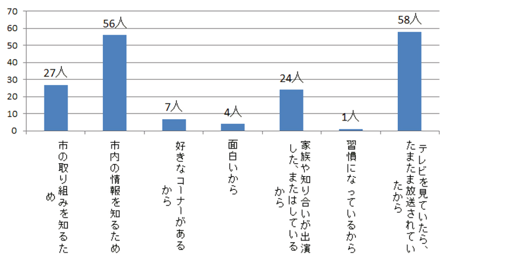 毎回見ている人と月に1回程度見ている人を合わせると、37%の人が日ごろから見ていることが分かりました。 3年前に実施したアンケートでは29.4%という結果だったことから、「ちゃんねるよっかいち」が少しずつ浸透し、視聴者が増加していることがうかがえます。