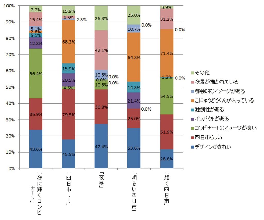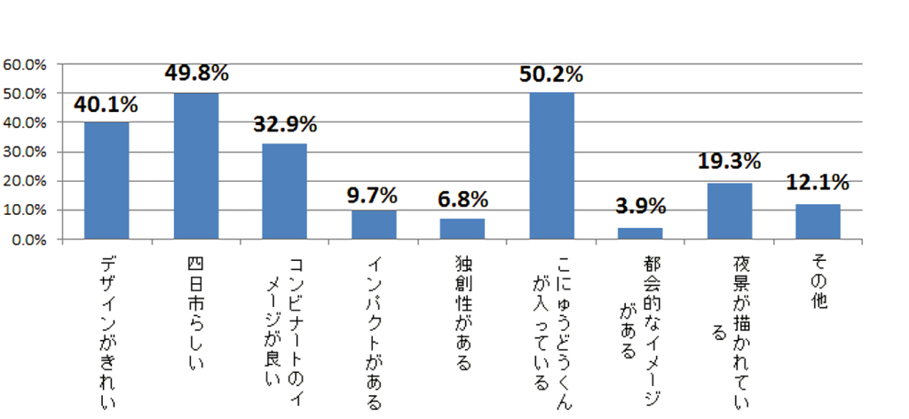 全体的に「こにゅうどうくんが入っている」「四日市らしい」「デザインがきれい」という理由でデザインを選ぶ傾向があります。