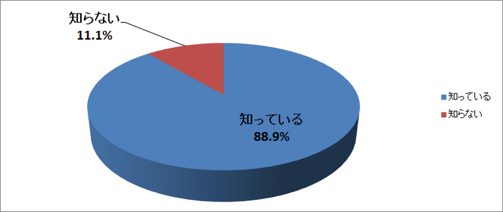 約9割の人が「知っている」と回答。1年前のアンケート実施時(「知っている」73.5%)よりも15ポイント以上増加したことがわかる。